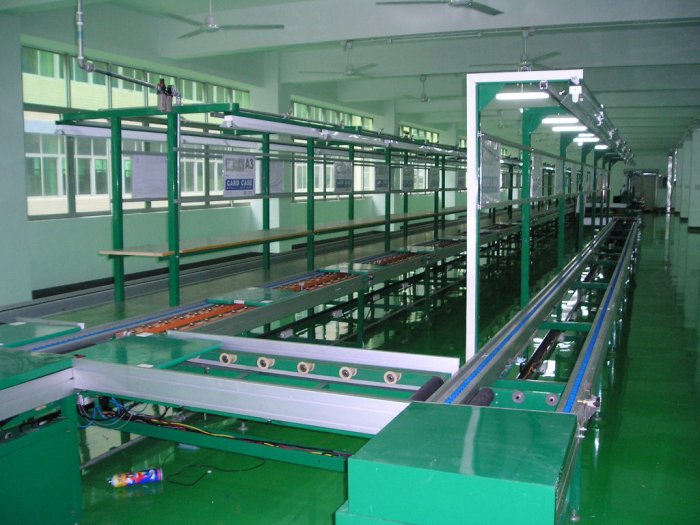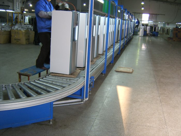 流水線是在一定的線路上連續(xù)輸送貨物搬運機械,又稱輸送線或者輸送機。按照輸送系列產(chǎn)品大體可以分為:皮帶流水線、板鏈線、倍數(shù)鏈線、插件線、網(wǎng)帶線、懸掛線及滾筒流水線這七類流水線。一般包括牽引件、承載構件、驅動裝置、張緊裝置、改向裝置和支承件等。流水線輸送能力大,運距長,還可在輸送過程中同時完成若干工藝操作,所以應用十分廣泛。 流水線安裝注意事項 流水線的平面設計應當保證零件的運輸路線較短,生產(chǎn)工人操作方便,輔助服務部門工作便利,較有效地利用生產(chǎn)面積,并考慮流水線安裝之間的相互銜接。為滿足這些要求,在流水線平面布置時應考慮流水線的形式、流水線安裝工作地的排列方法等問題。 流水線安裝時工作地的排列要符合工藝路線,當工序具有兩個以上工作地時,要考慮同一工序工作地的排列方法。一般當有兩個或兩個以上偶數(shù)個同類工作地時,要考慮采用雙列布置,將它們分列在運輸路線的兩例。但當一個工人看管多臺設備時,要考慮使工人移動的距離盡可能短。錕道線有兩個大類。其一是有動力,其二是無動力,這個就是無動力錕道線的一種。無動力的基本原理就是利用物體的自身重力,使物體以均勻加速度自動分配到各個工位。