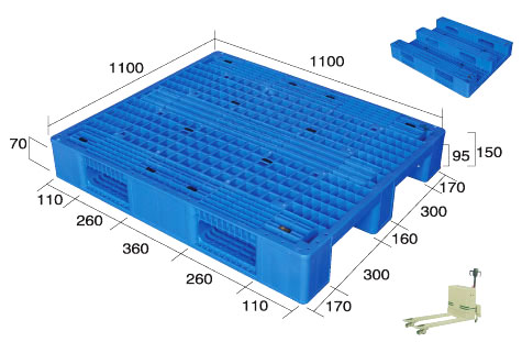 塑料托盤(pallet)是為了便于貨物裝卸、運輸、保管和配送等而使用的由可以承載若干數(shù)量物品的負(fù)荷面和叉車插口構(gòu)成的裝卸用墊板。它是物流產(chǎn)業(yè)中較不起眼,卻又無處不在的一種物流器具,是靜態(tài)貨物轉(zhuǎn)變?yōu)閯討B(tài)貨物的主要手段。盡管只有一米見方大小,卻“可以移動整個地球”,所以又叫做“活動的地面”、“移動的貨臺”。 塑料托盤的特點: 1、四面可插,操作方便; 2、既適合在倉庫中互相堆垛,又適合在各類貨架上使用; 3、適合各類卡車運輸,方便物料的集裝化、單元化運輸; 4、方便叉車、液壓托盤車等搬運工具作業(yè); 5、配合防滑橡膠,保證物料在搬運和運輸過程中不會滑落; 6、使用壽命長,且可循壞再用; 7、塑料托盤使用安全、衛(wèi)生、防蟲防蛀,無需修理。 塑料托盤的缺點: 受生產(chǎn)模具的影響(設(shè)計復(fù)雜、價格昂貴),塑料托盤結(jié)構(gòu)及尺寸隨意性差,生產(chǎn)企業(yè)必須不斷開發(fā),逐漸豐富其產(chǎn)品種類。但對于特殊尺寸要求,有時也無法滿足。 由于塑料托盤基本為一次成型,其破損后可修復(fù)性很低,破損一定程度后,只能報廢,但廢料可以回收。 采購時一次性投入較大,一般為木質(zhì)托盤的2—5倍。| ·上一條:鋼托盤 | |